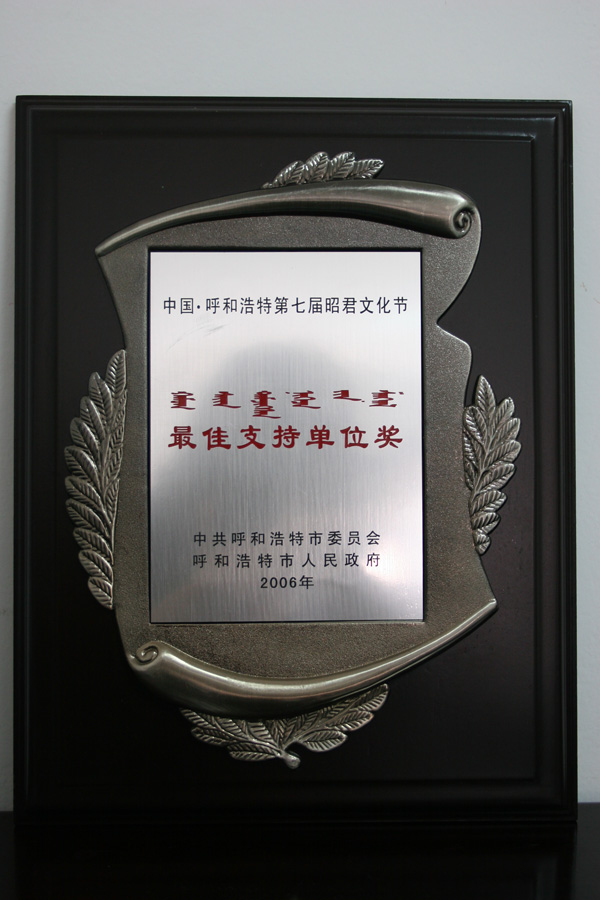 中國·呼和浩特第七屆昭君文化節最佳支持單位獎