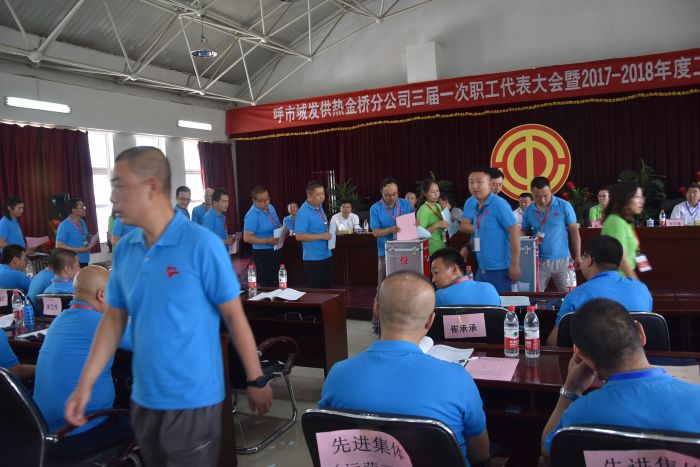 2018年6月15日上午,城發(fā)金橋熱網(wǎng)分公司第三屆第一次職工代表大會暨2017-2018采暖年度工作總結(jié)表彰大會在分公司五樓會議室召開。城發(fā)公司工會副主席張智強(qiáng)、分公司班子成員、職工代表、列席代表、先進(jìn)集體和先進(jìn)個(gè)人近200人參加會議。