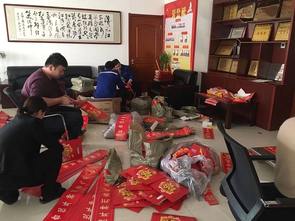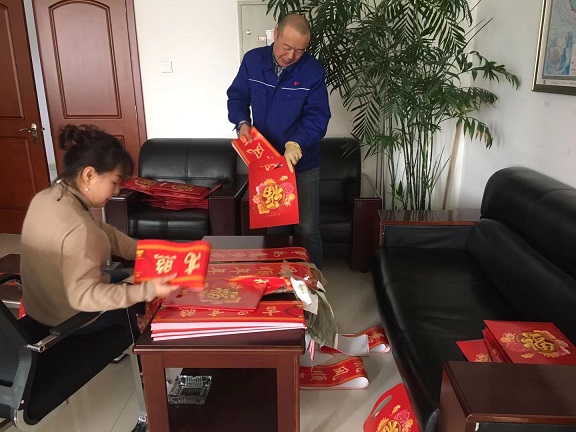臨近春節,年味日漸濃郁,城發(fā)物業(yè)公司為業(yè)主服務(wù)解業(yè)主所需,秉承關(guān)懷業(yè)主的人文理念為各住宅小區及公租房業(yè)主準備了包含對聯(lián)、福字、窗花、紅包袋的春節福袋,并組織員工上門(mén)為業(yè)主送去春節福袋,表達對業(yè)主的春節祝福。