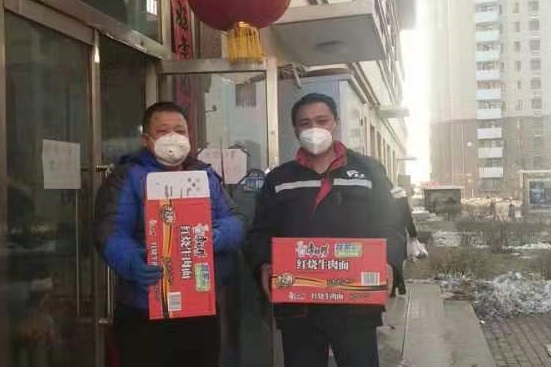 康居家園公租房好心住戶(hù),第一時(shí)間把2箱84消毒液、100個(gè)口罩送到了項目經(jīng)理手中,便利店工作人員送來(lái)了方便面。祥和苑公租房不愿留下姓名的業(yè)主把方便面、牛奶、礦泉水放到了秩序維護部?;菪略饭夥恐驹刚邚堖M(jìn)軍捐贈了25千克消毒液、20雙勞保手套。兄弟單位金橋熱網(wǎng)分公司為物業(yè)工作人員提供了護目鏡。