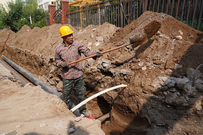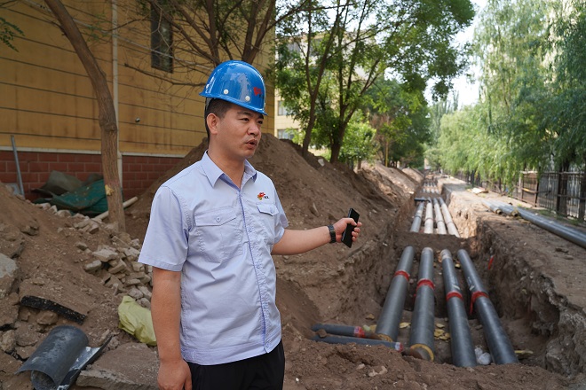 白云偉說(shuō),"這段供熱管線(xiàn)下面還有一段天然氣管線(xiàn)。這段管溝長(cháng)度僅55米多,但施工難度較大,機具僅開(kāi)挖了表層,其余是人工開(kāi)挖,人工開(kāi)挖就進(jìn)行了三天,55米管溝開(kāi)挖、鋪設管道就用了一周的工期。"