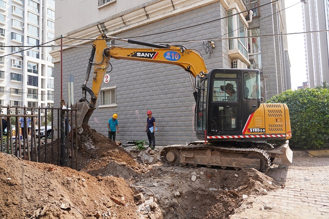 三合村第二運營(yíng)所副所長(cháng)白云偉介紹,"開(kāi)天花園小區,分為二個(gè)作業(yè)區,分別為"直埋管道開(kāi)挖、焊接、回填作業(yè)區"和"更換單元立管作業(yè)區"。目前,整個(gè)小區樓棟的地溝管、高層單元的立管已全部更換。北區的直埋管道開(kāi)挖、焊接工作今天全部完工,明天開(kāi)始進(jìn)行打壓試驗,計劃下周一進(jìn)行回填,下周二前回填完畢;下周開(kāi)始開(kāi)挖南區的主管溝,預計整個(gè)工程九月中旬全部完工。"
