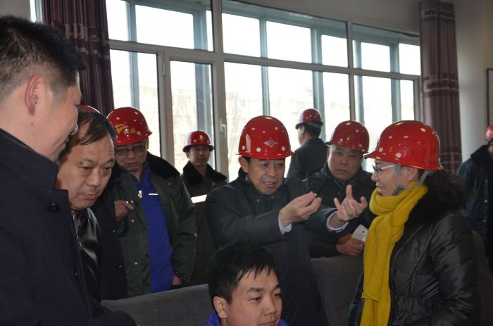 城發(fā)公司董事長(cháng)張瑞平在橋靠司爐車(chē)間給環(huán)保局領(lǐng)導講解脫硫情況
