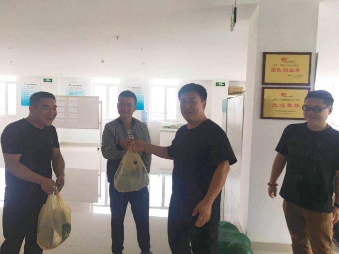 2018年8月17日,城發(fā)物流公司工會(huì )組織開(kāi)展了暑期慰問(wèn)、清涼一夏的送清涼慰問(wèn)園區一線(xiàn)員工的活動(dòng)。黨支部書(shū)記楊福平、經(jīng)理丁雪峰等一行為物流公司一線(xiàn)員工送去了慰問(wèn)品。
