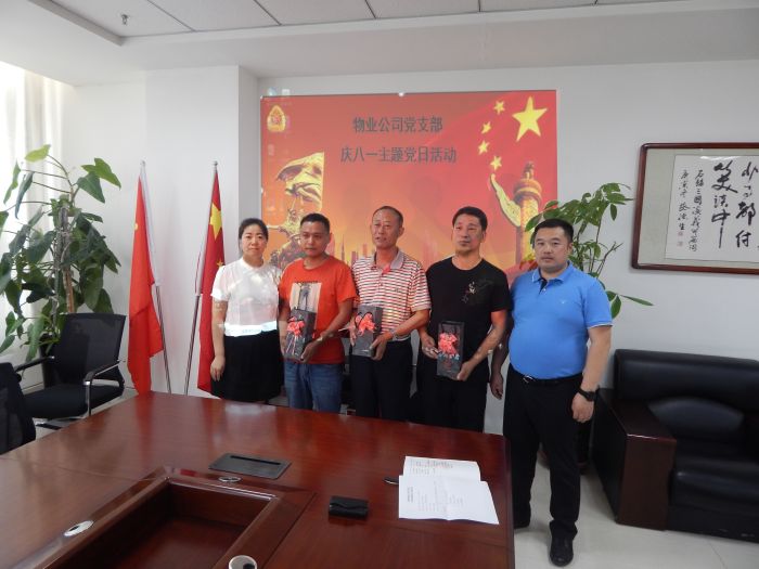 8月1日,物業(yè)公司黨支部開(kāi)展“慶八一”主題黨日活動(dòng),共同慶祝中國人民解放軍建軍92周年,公司3名復轉軍人和支部全體成員參加了活動(dòng)。